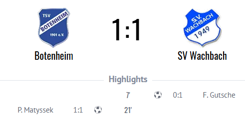 Eine völlig verschlafene Anfangsphase des SVW bescherte den Gästen früh eine 2:0–Führung. In der der 3. Minute nutzte Mittnacht mehrere Fehler der Heimelf und traf leicht abgefälscht zum 0:1. Wachbach fand zunächst keinen Zugriff und kassierte wenig später das zweite Gegentor, als Weyhrauch den Ball sehenswert in den Winkel schlenzte. In dieser Phase verpasste es Untergriesheim, den Vorsprung auszubauen. Erst allmählich bekam Wachbach die Partie besser in den Griff. Nach der Pause sah ein Gäste-Spieler nach Foulspiel die Gelb-Rote Karte. Wachbach erhöhte den Druck, kassierte jedoch das 0:3 durch einen spektakulärer Treffer: Tim Falk traf aus 18 Metern per Rabona-Trick unhaltbar ins lange Eck. Beide Seiten erzielten anschließend jeweils ein wegen Abseits aberkanntes Tor, bevor Wolfarth zum 1:3 traf. Kurz vor dem Ende wurde der Gästetorhüter per Roter Karte vom Platz gestellt. Trotz doppelter Überzahl gelang Wachbach nur noch das 2:3 – erneut durch Wolfarth. Der vermeintliche Ausgleich durch Gutsche wurde abermals wegen Abseits zurückgepfiffen. Unterm Strich steht ein verdienter Sieg der Gäste, die in Gleichzahl das klar bessere Team stellten.